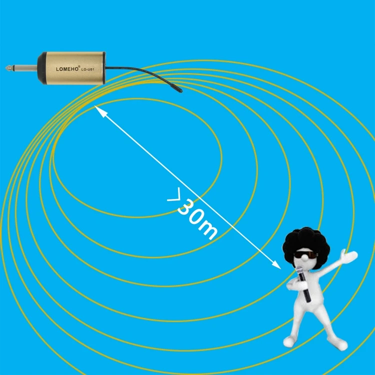 1). UHF Band, One Metal handheld microphone with selectable frequencies (725-739MHz/625-657MHz), working range is over 30 meters (100 feet)