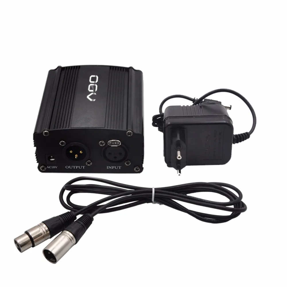 48V Phantom Power Supply with Adapter, BONUS+XLR 2M Pin Microphone Cable for Any Condenser Microphone Music Recording Equipment