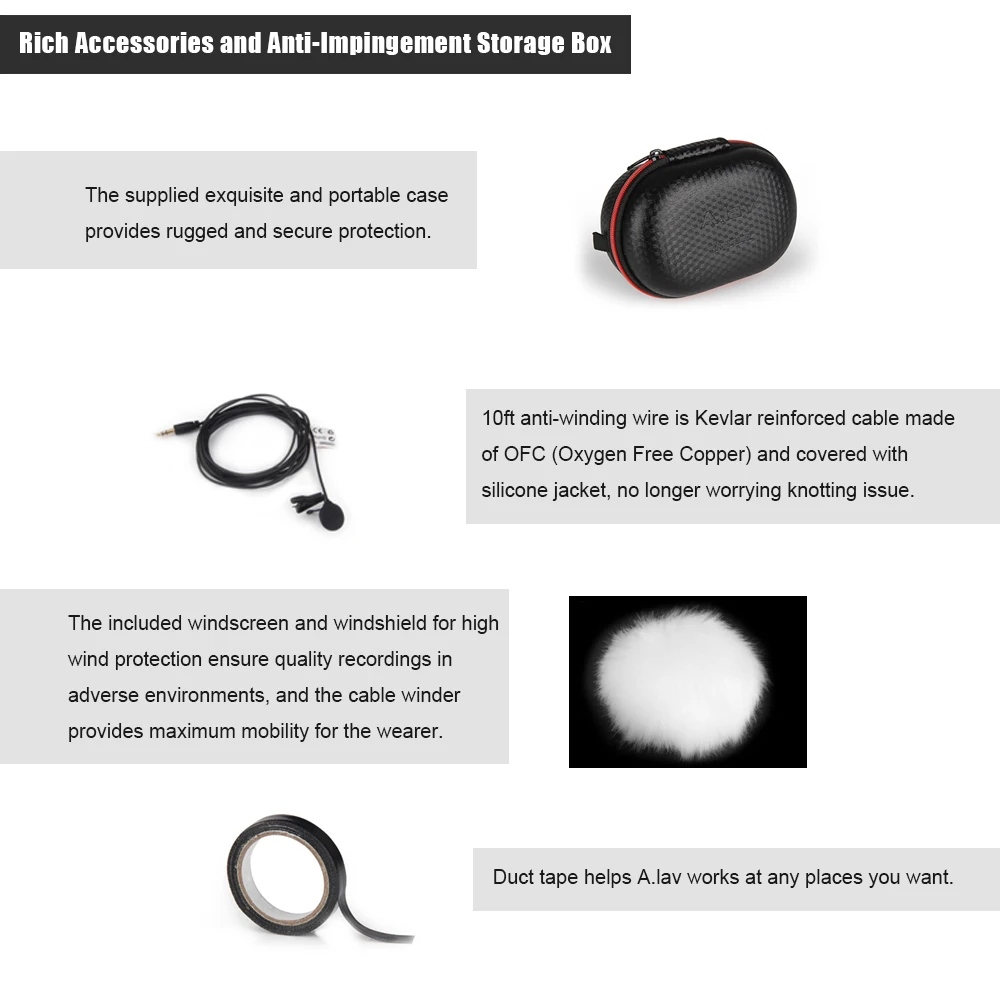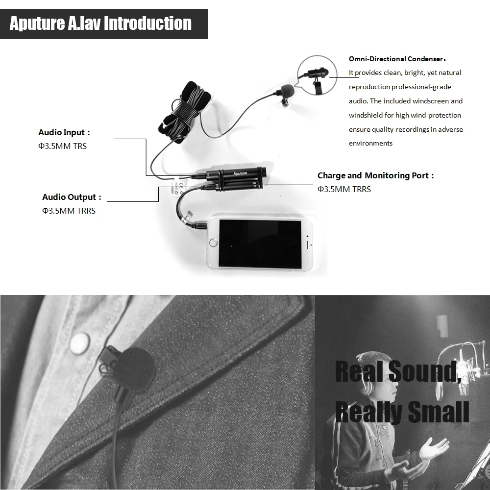 Aputure A.lav is a professional omni-directional lavalier microphone with selected condenser element. From the microphone to inductor,