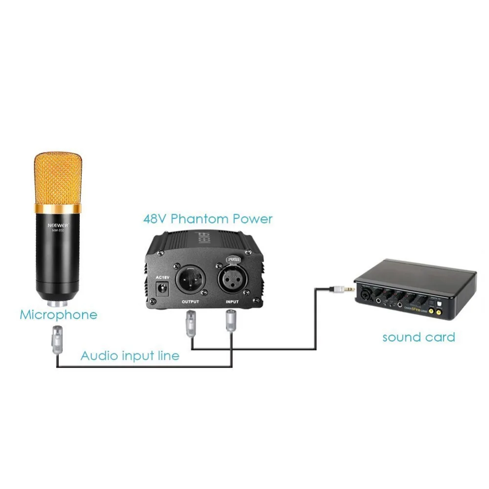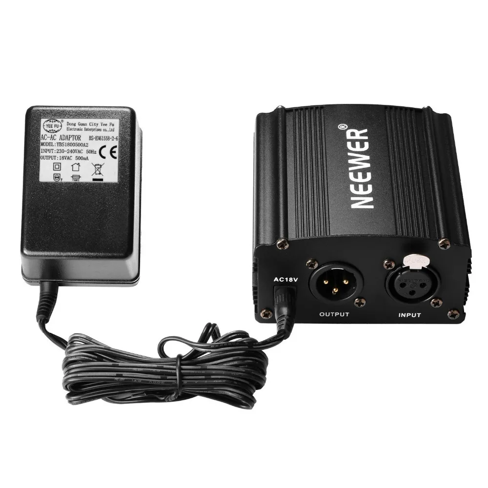 Neewer 1-Channel 48VPhantom Power Supply with Adapter and One XLR Audio Cable for Condenser Microphone Music Recording Equipment