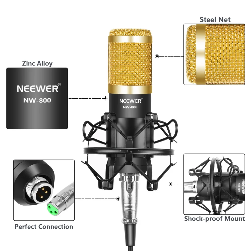 Neewer NW-800 Black+Silver/Black+Gold/White+Silver/Blue+Silver
