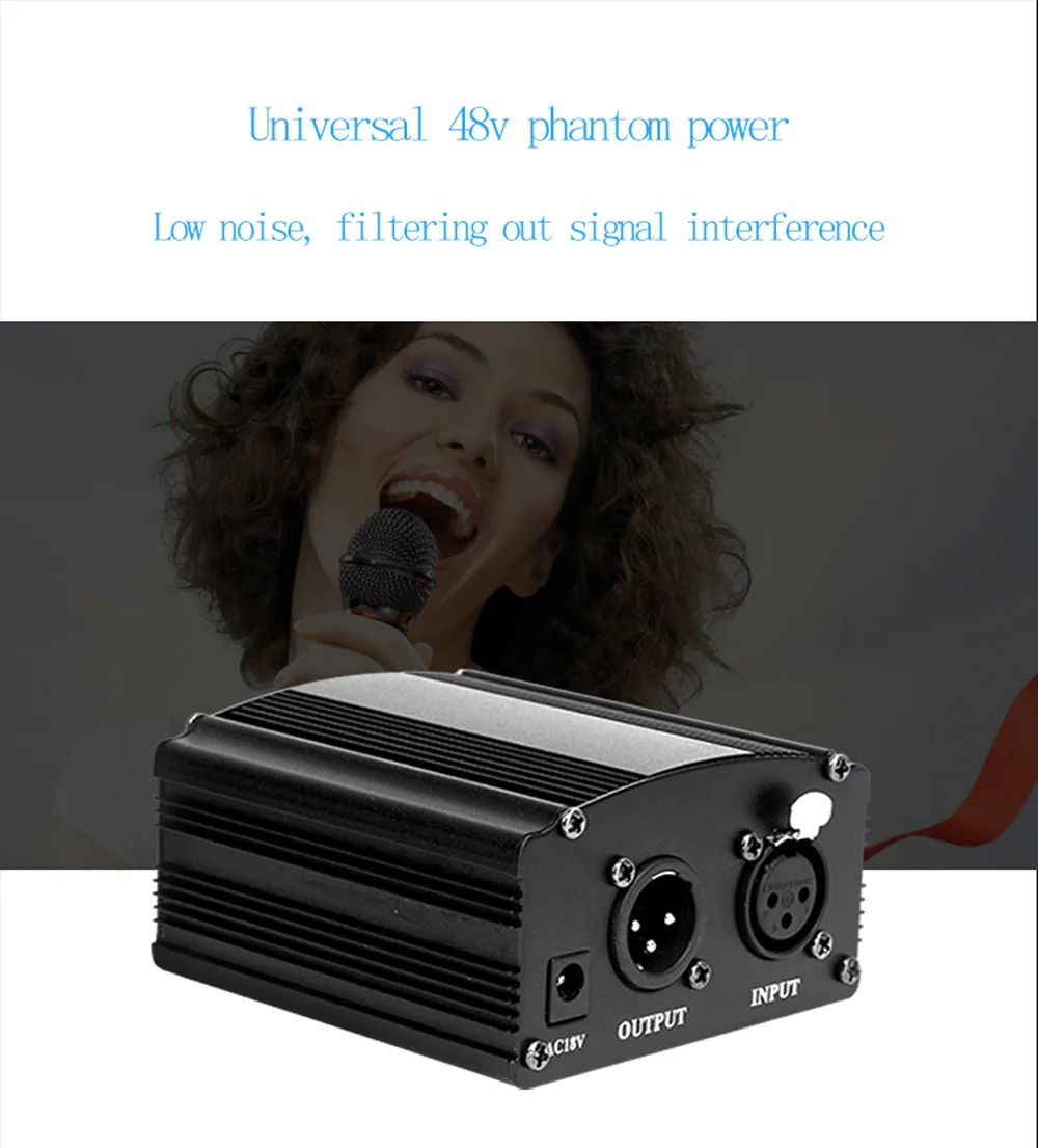 OGV Tricolor colour 48V Phantom Power Supply Adapter XLR Audio Cable for Condenser Micro Microphone Recording Equipment