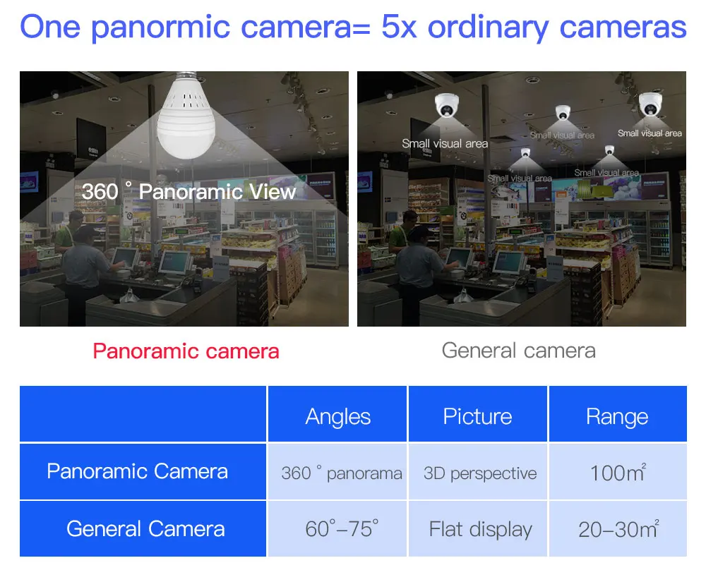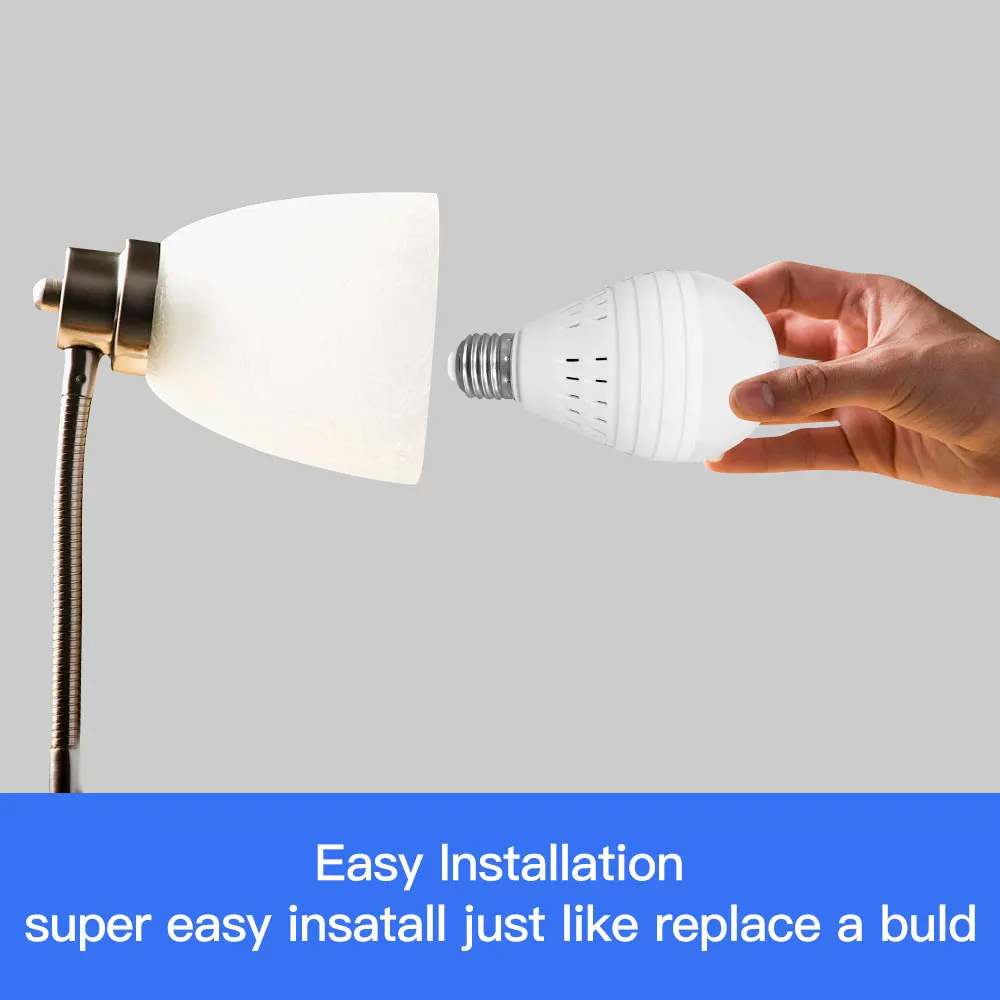 SDETER Bulb Lamp Wireless IP Camera Wifi 960P Panoramic FishEye Home Security CCTV Camera 360 Degree Night Vision Support 128GB